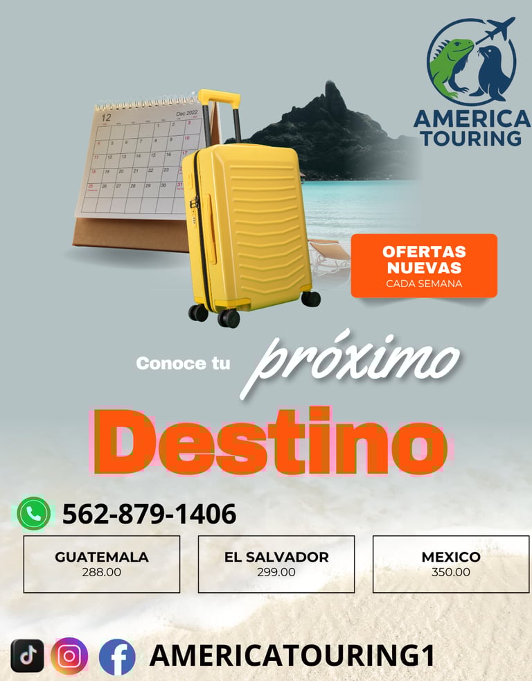 América Touring es una agencia de viajes con años de experiencia haciendo realidad los sueños de miles de viajeros. Ofrecemos atención personalizada, asesoría experta y los mejores destinos nacionales e internacionales para que vivas cada aventura con confianza y tranquilidad.
